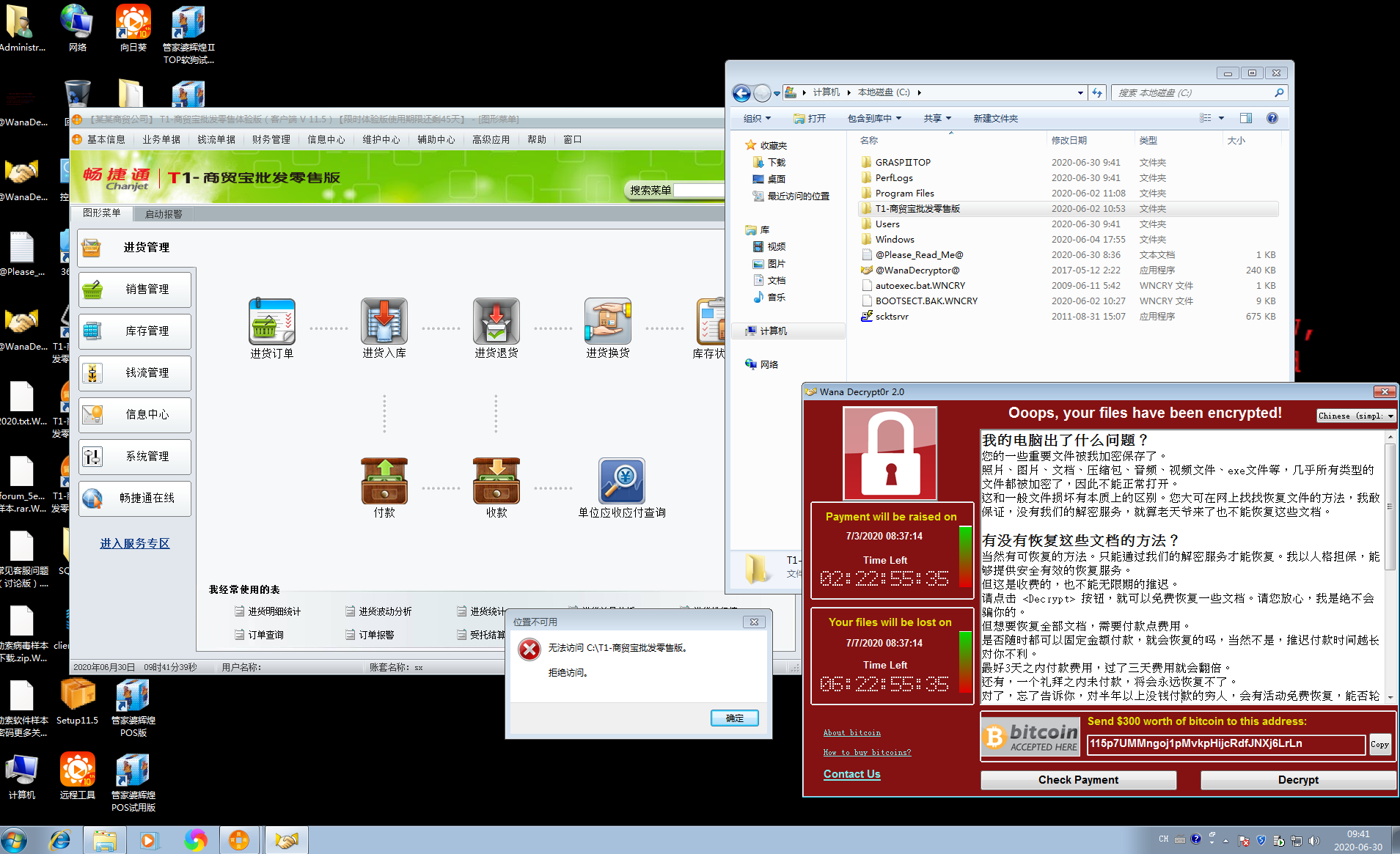 上图显示思智信息测试人员经过主动释放勒索病毒样本,电脑上大部分文件瞬间被感染,而业务系统(ERP管理软件、财务软件、用友、金蝶、PLM、ECM、MES等系统)依然能保持正常运行,经过ZK-Sec2020控制着业务系统的本身目录的访问、删除、篡改权限,有效抵抗了勒索病毒感染。ZK-Sec2020不但具有勒索病毒免疫功能,还能实现企业业务系统数据导出excle表格自动加密,防止经营数据泄露,为企业数据安全保护增添利器。