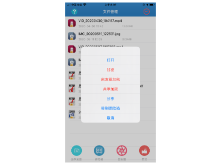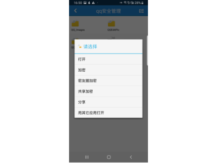 密友圈加密文件:安卓手机是可以直接在微信或qq收到文件后,到加密里的微信文件或qq文件选项找到对应的文件,点击对应的文件后,选择密友圈加密选项。苹果手机是选择收到的文件后,选择右上角-用其它应用打开-拷贝到智块|360加密,然后在加密里点击文件进行密友圈加密。