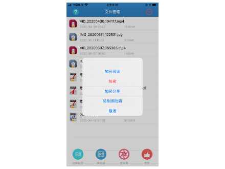 加密阅读:把加密后的文件,直接分享或发送给指定的密友圈的人,他收到后,手机上直接打开-右上角选择其它应用-选择智块|360加密打开,或到加密app内,找到对应的文件,选择加密阅读打开。电脑上是直接双击打开。